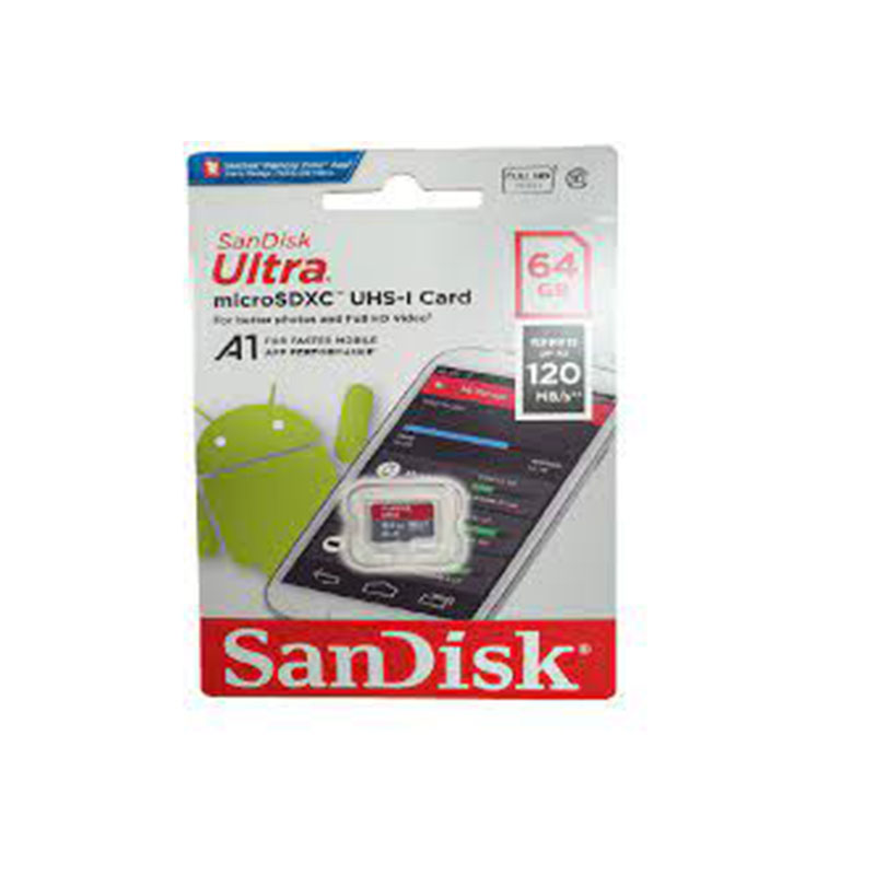 SanDisk 64Gb Ultra MicroSDXC UHS-I, Class 10, A1 MemoryCard 120Mb/S